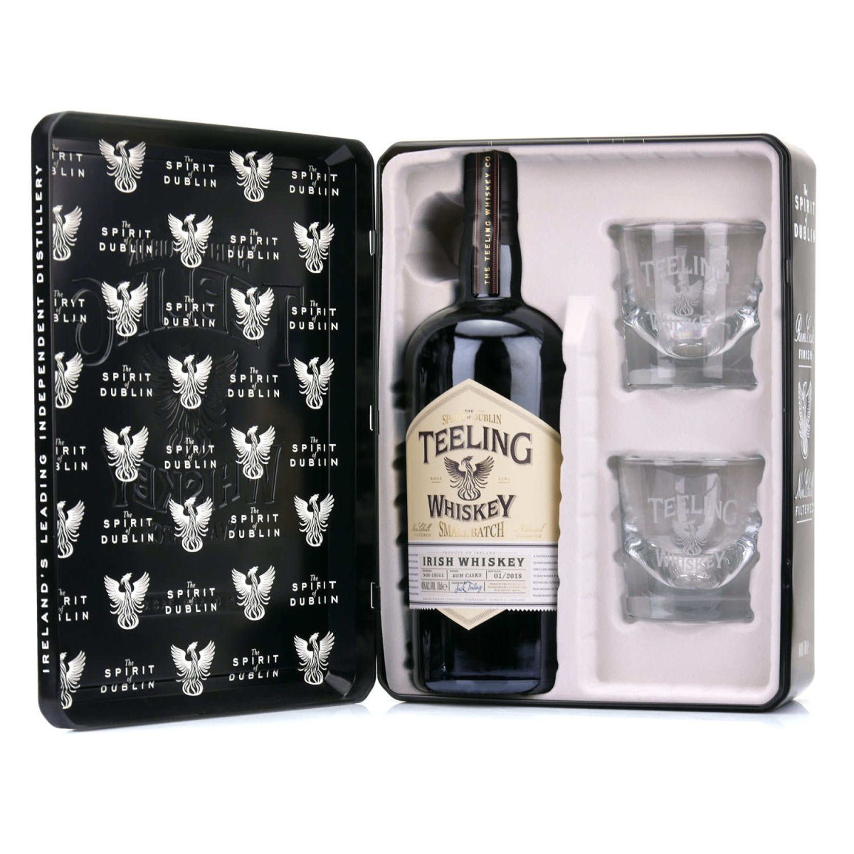 Denna eleganta presentförpackning innehåller en flaska Teeling Small Batch och två stilrena whiskyglas, perfekta för att dela en med en vän.